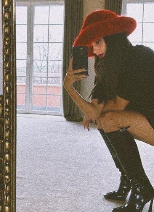 Ünlü oyuncu Hande Erçel'in pozu sosyal medyaya damga vurdu. Kırmızı ruju, şapkası ve siyah elbisesiyle ayna karşısında poz veren ünlü oyuncuya beğeni ve yorum yağdı.