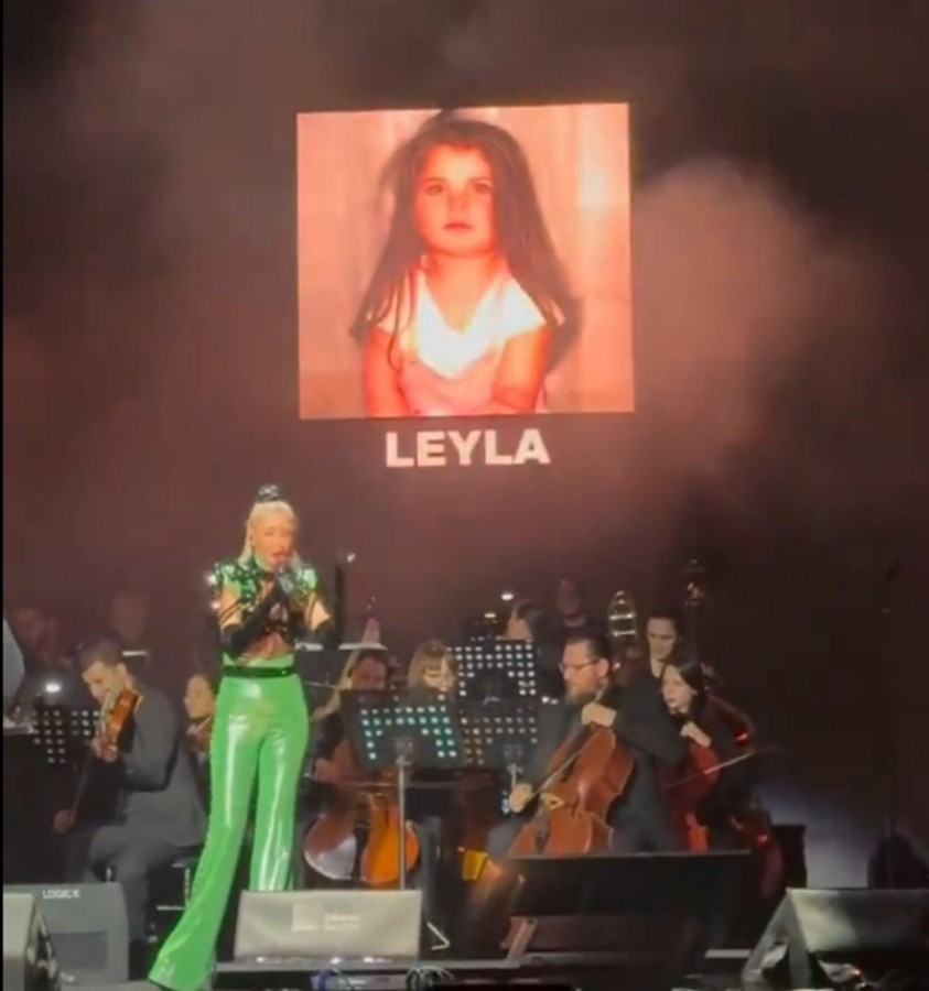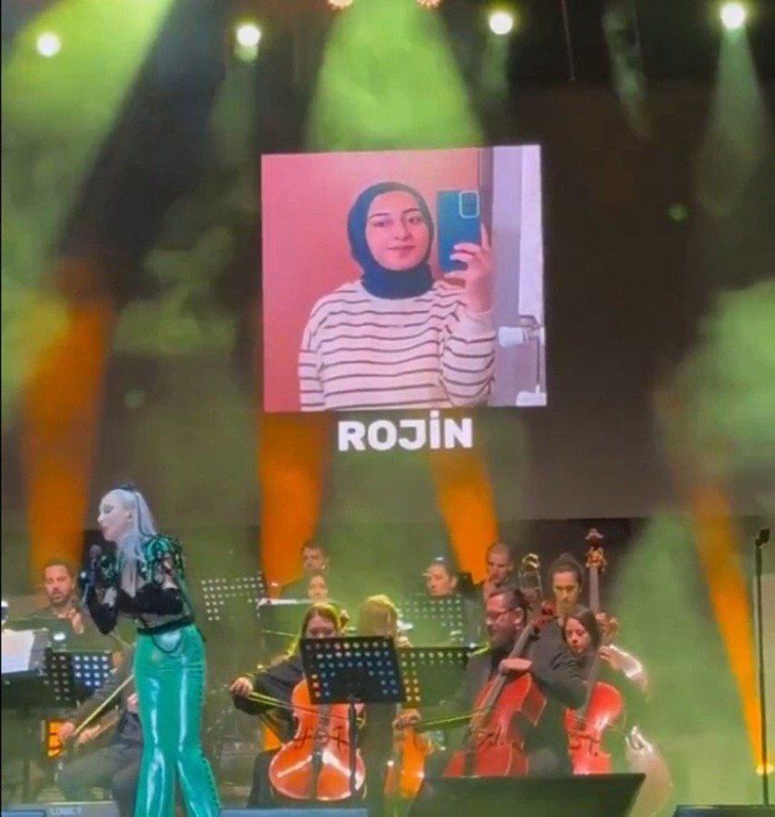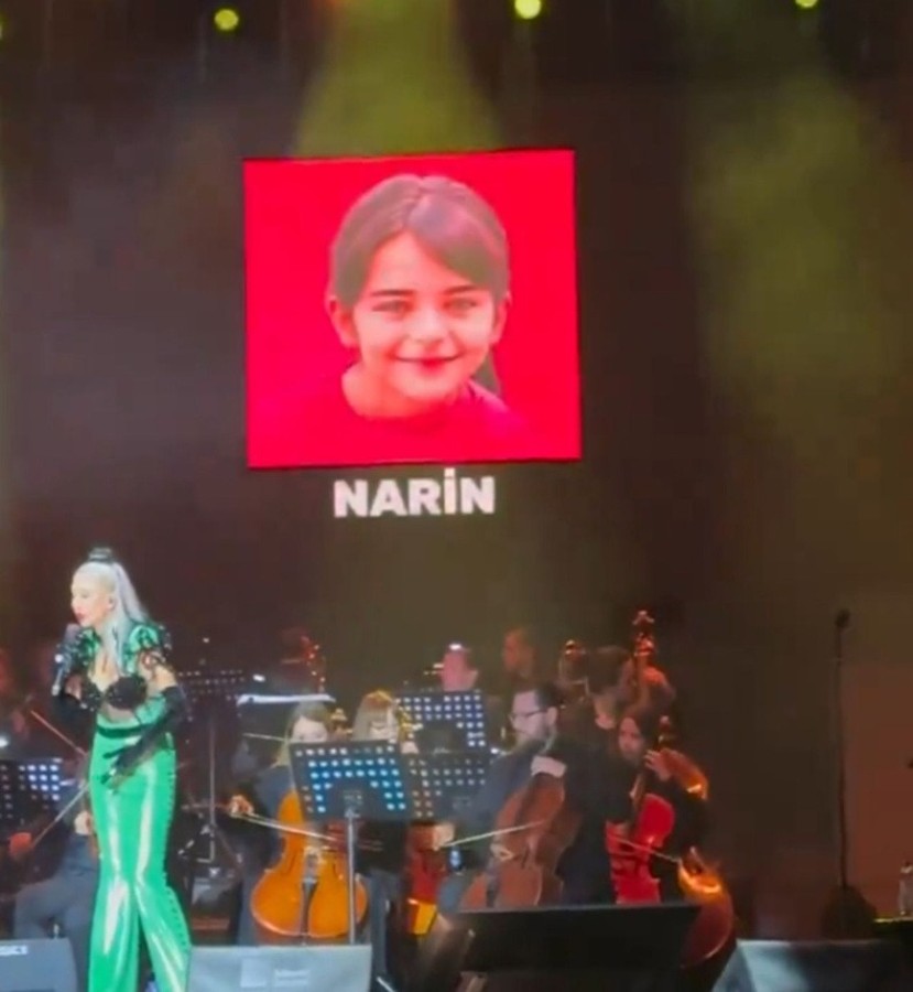 Ünlü şarkıcı Hande Yener, Sezen Aksu'nun 'Ünzile' şarkısını seslendirdiği konserinde, sahnede öldürülen kadın ve çocukların fotoğraflarını dev ekrana yansıtarak anlamlı bir performans sergiledi.