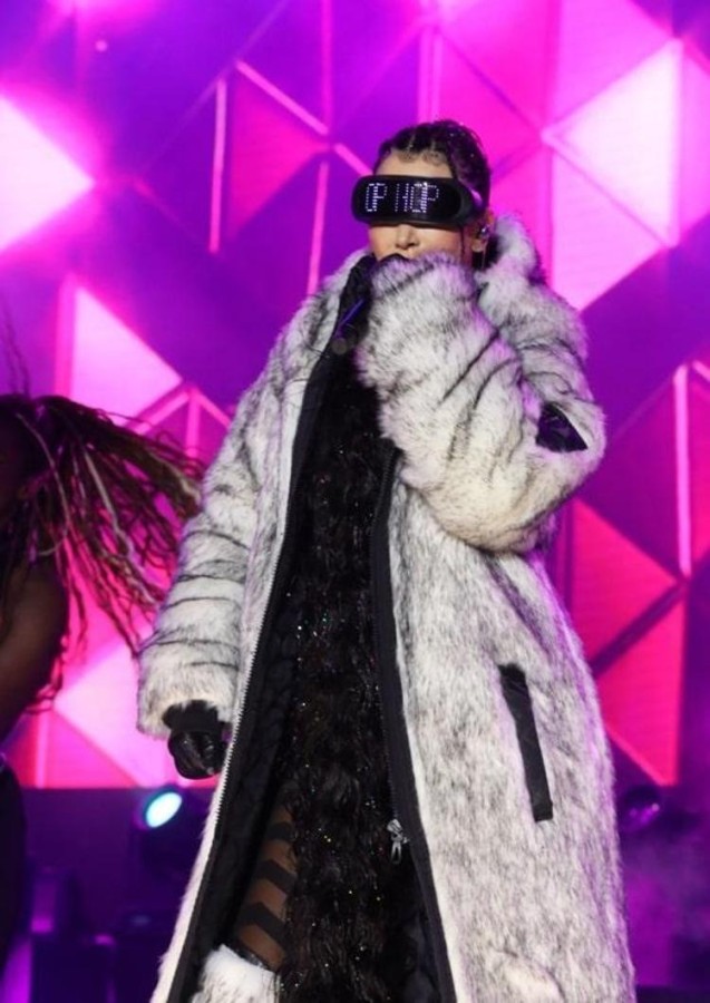 Hande Yener peluş malzemeden yapılmış taklit kürkü, 1.5 metre boyundaki ek saçları ve dijital gözlükleriyle dünya starlarını aratmadı. Seyircisine "Ben de Ajda Pekkan gibi olmayayım mı? Onu çok seviyorum" diye seslendi.