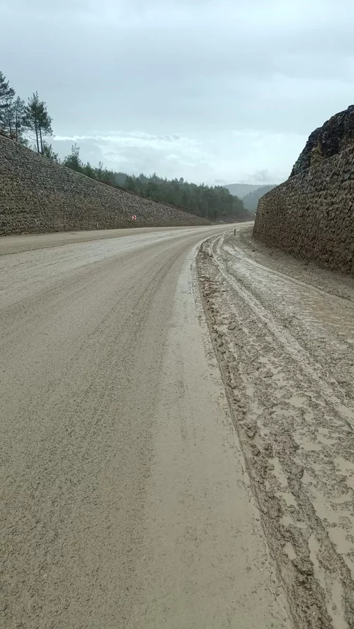 Bursa'da Harmancık-Orhaneli yolu, yol çalışmaları ve sağanak yağışların etkisiyle balçıkla kaplandı. Trafik güvenliğinin risk oluşturduğu yolu kullanmak istemeyen vatandaşlar, kilometrelerce uzaklıktaki alternatif yollara yöneldi.