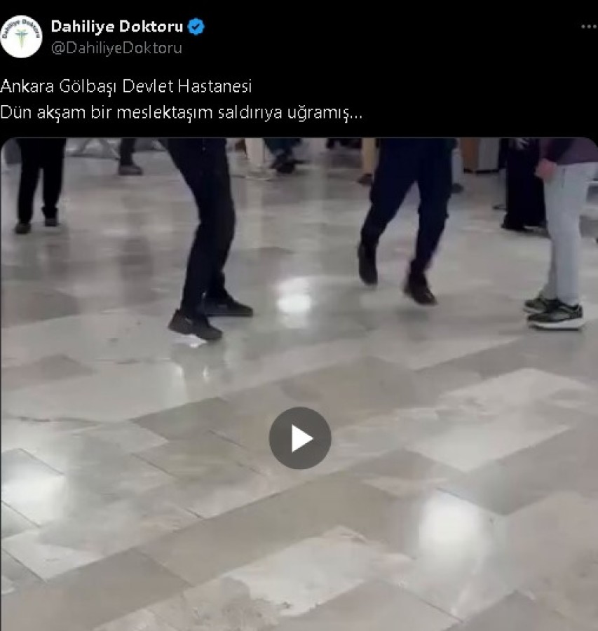 Sağlık çalışanların yönelik şiddet sürüyor. Görüntüler Ankara'dan X hesabında 'DahiliyeDoktoru' adresinde "bir meslektaşım saldırıya uğramış..." notuyla paylaşıldı.