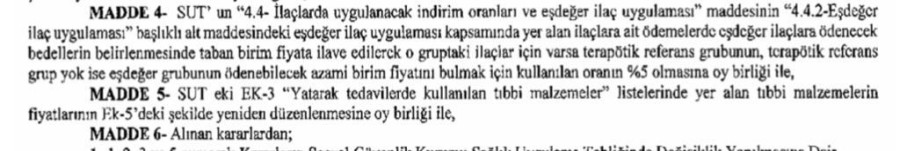 "Dün (24.08.2023 tarihli ve 32289 sayılı) mükerrer Resmî Gazete'de yayımlanan "2023/5 sayılı Sağlık Hizmetleri Fiyatlandırma Komisyonu Kararı"nın 4. Maddesinde, Sağlık Uygulama Tebliği 4.4.2 Eşdeğer İlaç Uygulaması başlıklı maddesi ile belirlenen eşdeğer grubunda ödenebilecek azami ilaç bedelinin belirlenmesinde kullanılan oran %5 olarak belirlenmiştir.