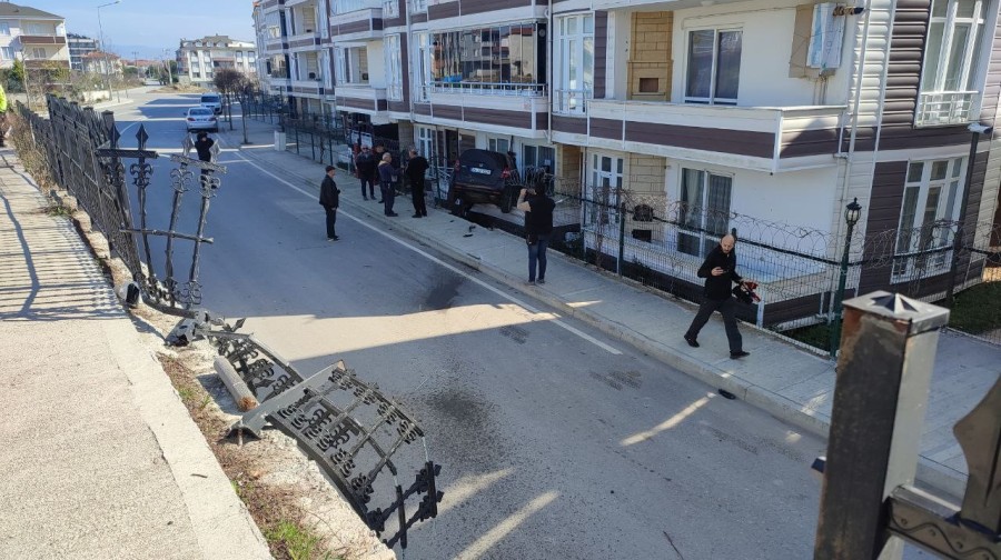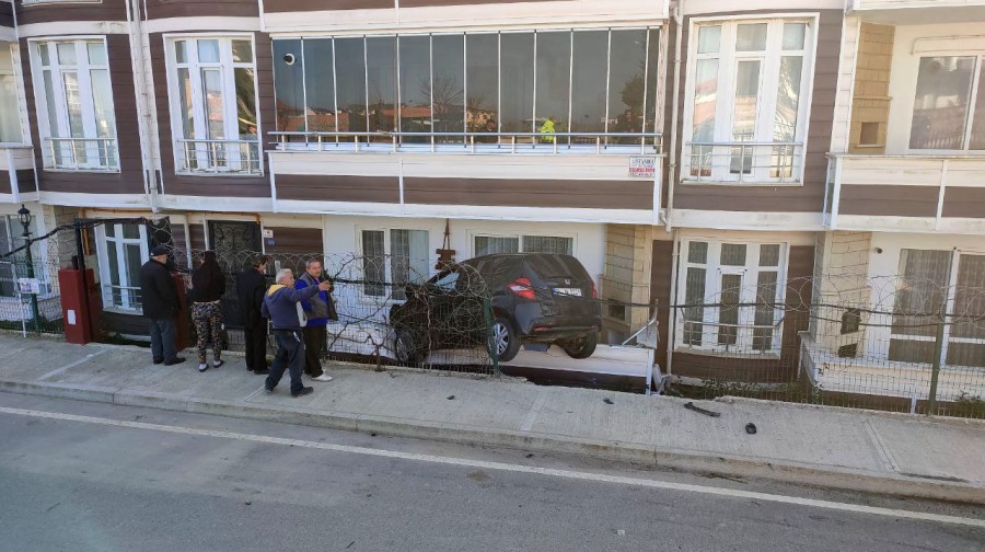 Sakarya'nın Karasu ilçesinde tartıştığı kişi tarafından silahla vurulan kişi, kendi aracıyla hastaneye giderken kontrolünü kaybetmesi neticesinde zemin kattaki evin balkonuna adete ok gibi saplandı.
