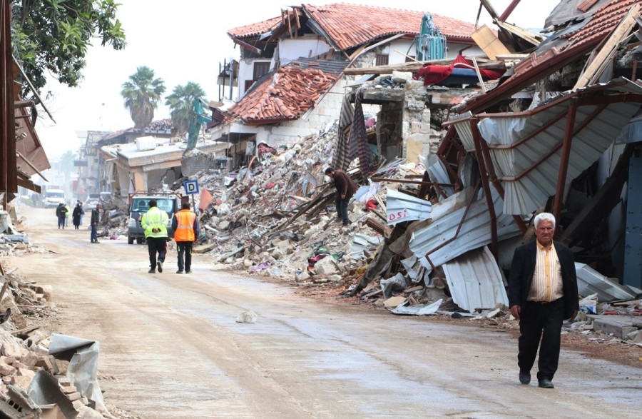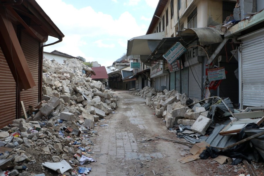 Kahramanmaraş merkezli depremin vurduğu Hatay'ın Antakya ilçesinde bölgenin en işlek yerlerinden olan ve tarihi 12'nci yüzyıla dayanan Uzun Çarşı'da 2 bin 500 dükkandan 700'ü yıkıldı.