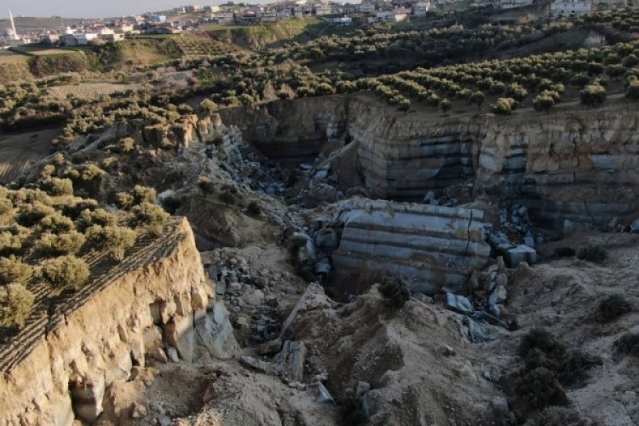 Hatay'da deprem sonrası bir köydeki zeytin tarlasını ikiye bölen 30 metre derinliğinde yaklaşık 200 metre genişliğinde dev bir yarık oluştu. Bölge sakinleri depremde büyük bir patlama sesi duyduğunu ifade etti.