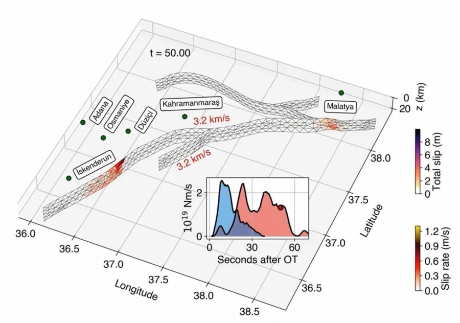 Kahramanmaraş merkezli depremlerden en çok hasarı alan illerin başında gelen Hatay'da kırılan fayın yıkıcı etkisinin 50 saniye sonra ulaştığı belirtildi.