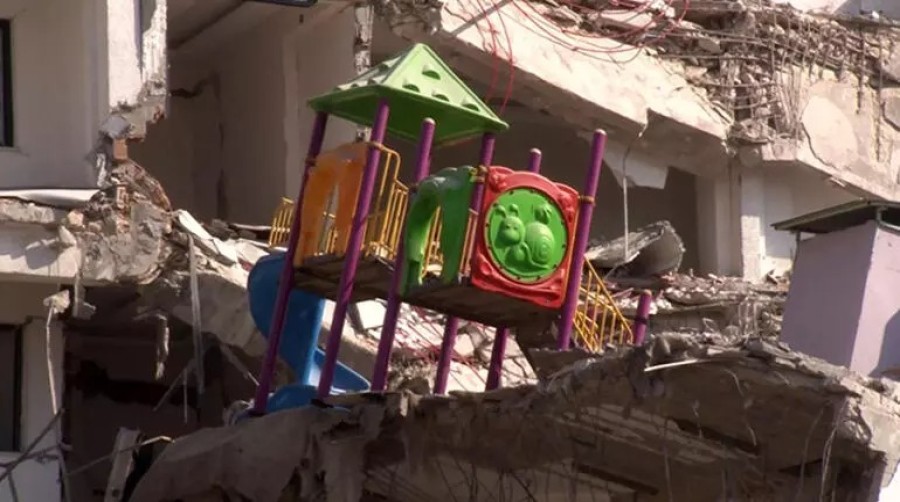Hatay'da deprem sırasında çökme meydana gelen bir binada, zemin kat kolonlarının havuz yapılacağı gerekçesiyle kesildiği iddia edildi. Aynı binanın teras katında ise çocuk oyun parkı olduğu görüldü. Enkaza dönüşen binada çok sayıda kişi hayatını kaybetti. Yıkılan bina dron ile görüntülendi.