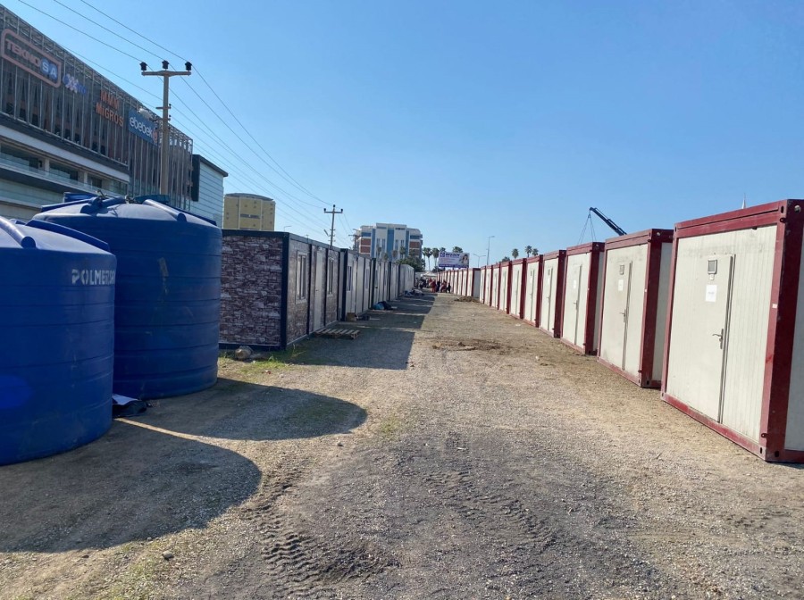 Bursa Gemlikli iş insanlarının katkılarıyla İskenderun İbrahim Karaoğlu Caddesi üzerinde bin 500 kişinin barınabileceği, içerisinde altyapı çalışmaları tamamlanmış ve 100 konteyner ev bulunan yeni bir yaşam alanı inşa ediliyor.