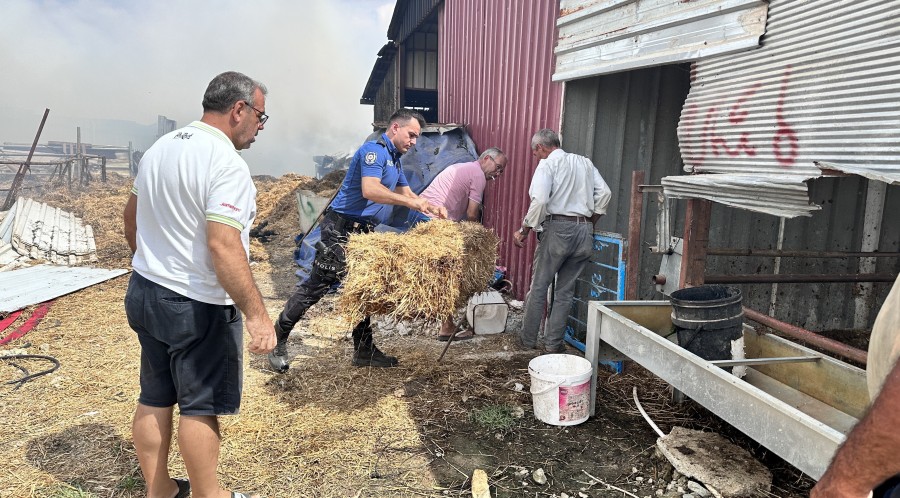 Yangında 2 kişi dumana maruz kalırken, iki küçükbaş hayvan telef oldu. Yangında çok sayıda saman balyası ise zarar gördü.