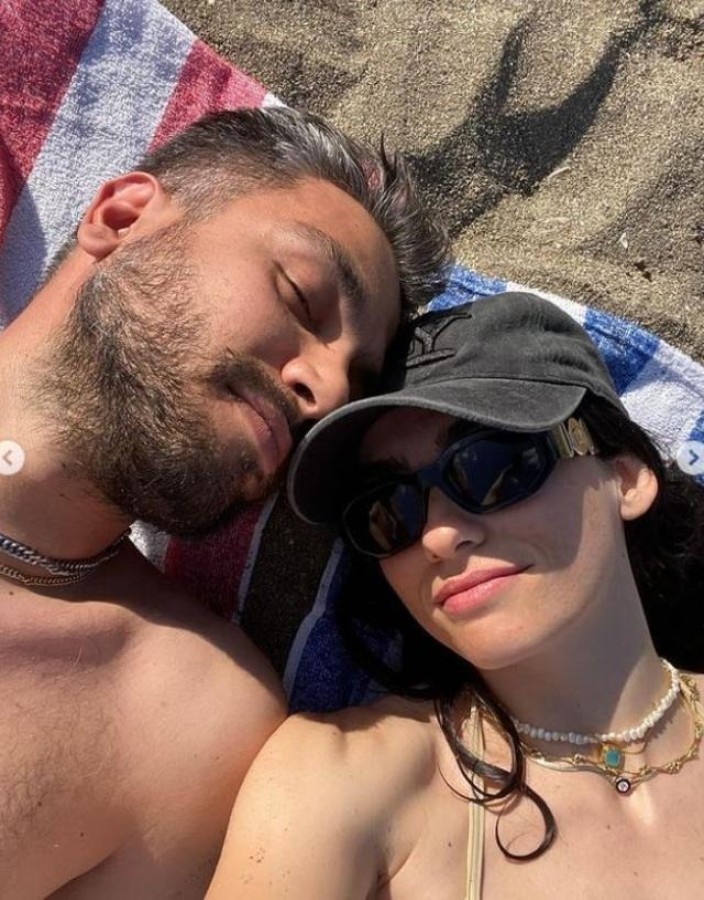 Güneşlenirken sevgilisiyle de poz veren Ergüçlü'ye hayranlarından "Hep mutlu ol" yorumları gecikmedi.