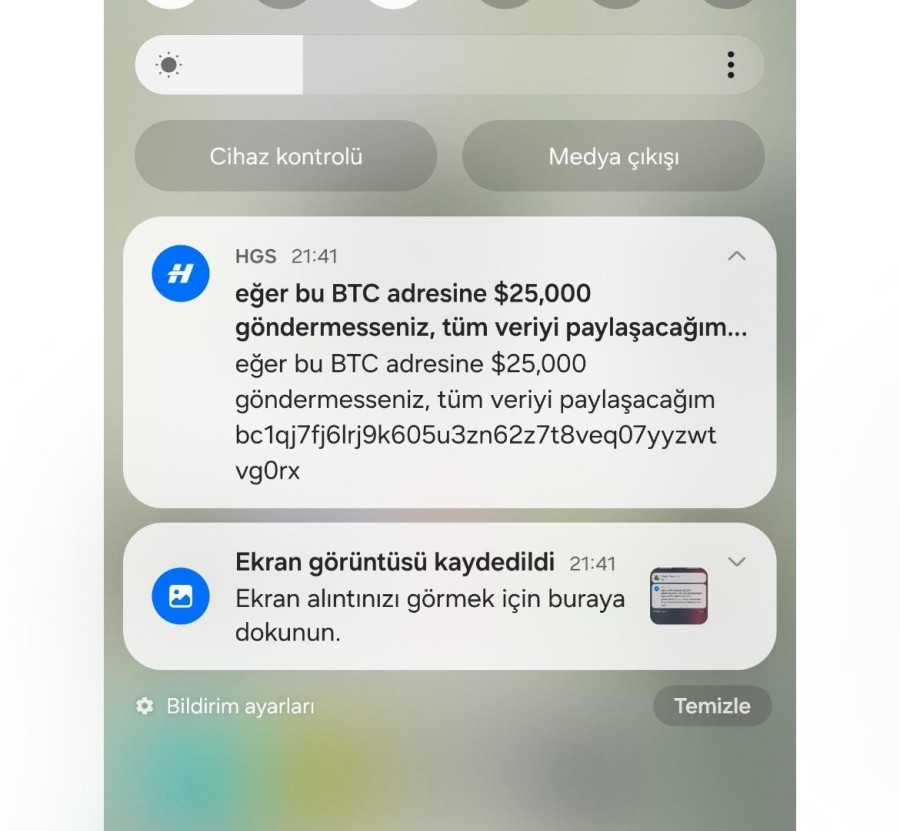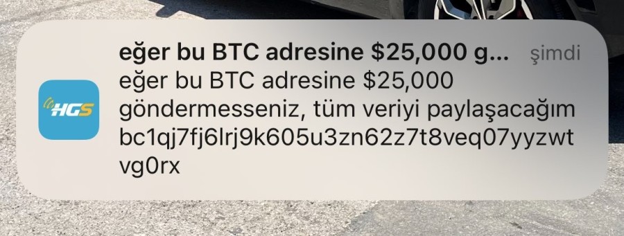 Mesajda "eğer bu BTC adresine $25,000 göndermesseniz, tüm veriyi paylaşacağım" denildi.