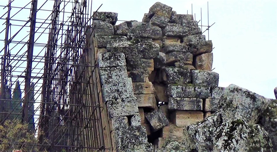M.Ö. 3. yüzyılda Bergama krallarından 2. Eumenes tarafından kurulduğu, ismini de Bergama'nın kahramanı Telephos'un karısı Amazonlar Kraliçesi Hiera'dan aldığı tahmin edilen Hierapolis Antik Kenti, Pamukkale'yi de bünyesinde barındırması nedeniyle her yıl dünyanın farklı ülkelerinden milyonlarca turisti ağırlıyor. Hierapolis'in önemli yapılarından birisi olan ve farklı medeniyetlerin izlerini taşıyan 2 bin 800 yıllık Hamam Bazilikası, yıkılma tehlikesiyle karşı karşıya kaldı. Yaşanabilecek olumsuzluklara karşı etrafı tel örgülerle çevrilen tarihi yapı, yıkılmaması için demir iskeleyle sabitlenmeye çalışıldı. Antik kentte 65 yıldır devam eden çalışmalarda yılda sadece 2 ay kazı ve restorasyon yapıldığına işaret eden turizmci Gazi Murat Şen, İtalyan heyeti tarafından yürütülen çalışmanın yetersiz olduğunu öne sürdü.