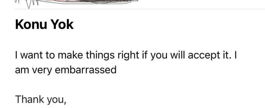Tatiline Yunanistan'ın Santorini Adası'nda devam ettiğini söyleyen turist, İngilizce olarak "Eğer kabul edersen işleri düzeltmek istiyorum. Çok utanıyorum. Teşekkür ederim." yazılı mail attı.