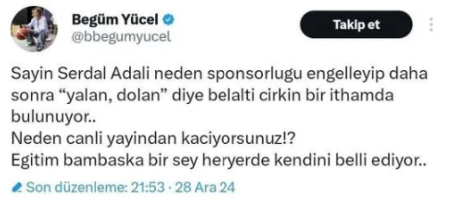 "Sayın Serdal Adalı, neden sponsorluk sürecini engelledikten sonra "yalan, dolan" gibi ağır ve yakışıksız bir ithamda bulunuyorsunuz?"
