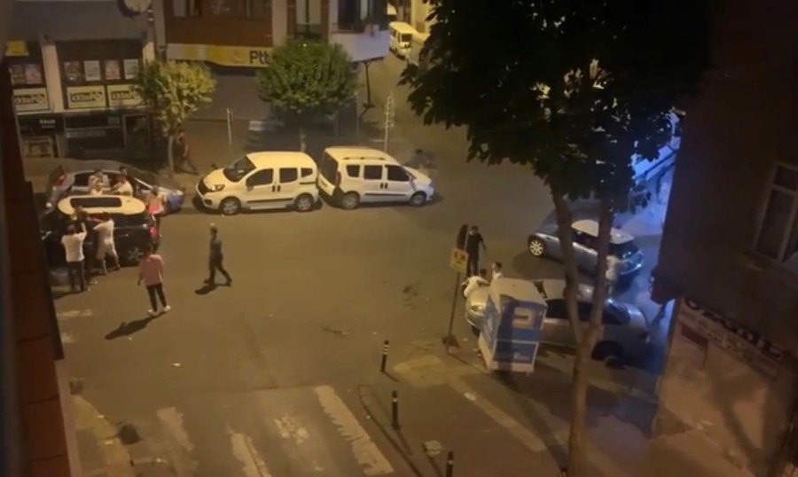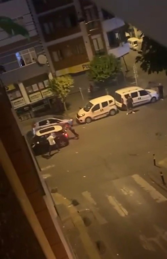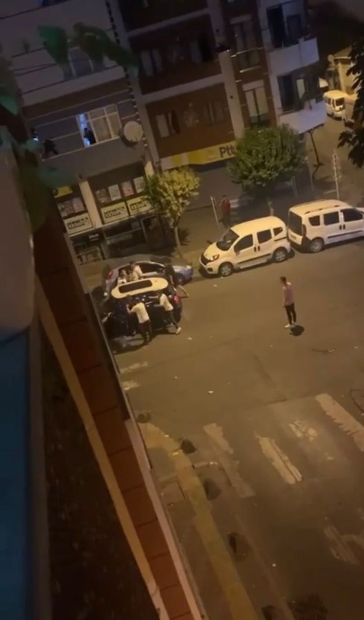 İstanbul Esenler'de sokakta karşılaşan husumetli iki kişi arasında kavga çıktı. Kavgadakilerden birinin durumu anlattığı arkadaşları olay yerine gelince ortalık savaş alanına döndü. Kavgadan kaçmaya çalışan kişinin otomobilini taşlayan grup, otomobilden indirdikleri kişiyi darbettikten sonra kaçtı. O anlar cep telefonu kamerasına yansıdı.