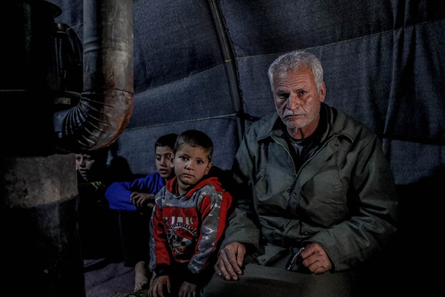 Yerinden edilmiş aileler, dondurucu soğuklarda genellikle sobalı bir çadırda toplanarak geceyi bir arada geçiriyor.
