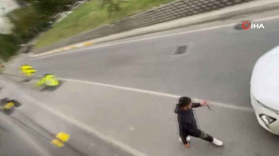 Daha sonra İETT aracını takip eden otomobilin arka koltuğunda oturan saldırgan araçtan inerek otobüsün camlarını yumruklayıp hakaret ve tehditlerde bulundu.
