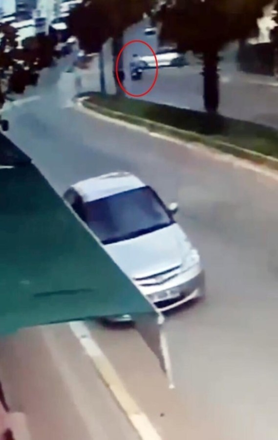 Motosiklet sürücüsü Yasin Mutlu'nun yan yoldan çıkan plakası ve sürücüsü öğrenilemeyen otomobile çarpmamak için manevra yaptığı anlar da güvenlik kamerasıyla kaydedildi. Görüntülerde; plakası ve sürücüsü öğrenilemeyen otomobil sürücüsünün tali yoldan ana yola çıkması, motosiklet sürücüsü Yasin Mutlu'nun manevrası sonrası yaşanan Kaza yer aldı.