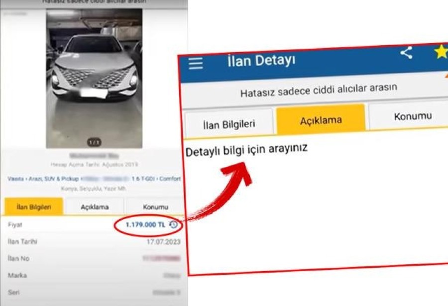 1 milyon 190 bin liraya ilana sunulan bir aracın açıklama kısmında 130 bin lira ekstra ücret var yazan bir satıcı da arandığında ilandaki aracını 120 bin lira fazlaya yaklaşık sattığını belirterek 1 milyon 295 bin liraya aracın kaporasını aldığını belirtti.