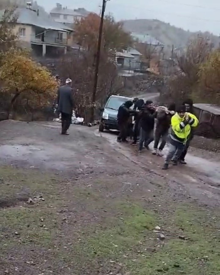 Köy sakinleri, halat bağladıkları ve yaklaşık 30 metre yokuş yukarı çektikleri aracı, düzlüğe çıkardı. Dayanışma örneği gösteren yaklaşık 15 kişi, daha sonra aracı pikaba yükledi. Kaza sonrası o anlar, cep telefonu ile görüntülendi.