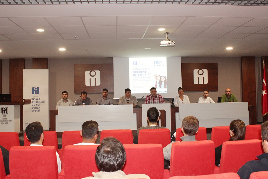 İnşaat Mühendisleri Odası (İMO) Bursa Şubesi Yönetim Kurulu, Gençlik Komisyonu'nun katkıları ile gerçekleştirilen Gençlerle Serbest Kürsü etkinliğinde genç inşaat mühendisleri ile bir araya geldi.