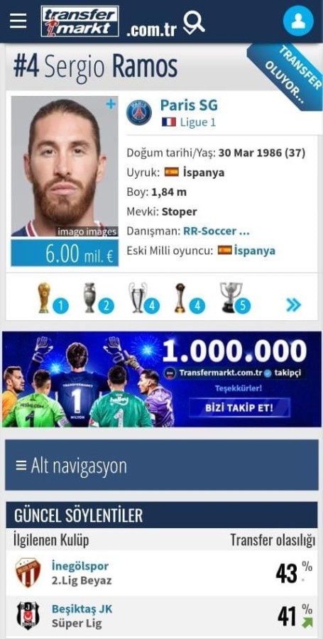 Aynı siteye göre Ramos'un peşindeki bir diğer Türk kulübü ise Beşiktaş.
