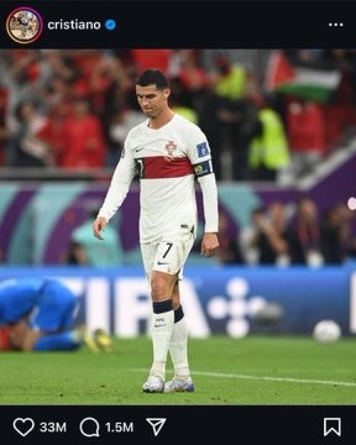 Portekiz'in Fas'a yenilip Dünya Kupası'ndan elenmesinin ardından sahayı terk eden Cristiano Ronaldo'nun Üzgün halleri dünya medyasının gündemine oturmuştu. O fotoğraf sosyal medyada fazla beğeni aldı.