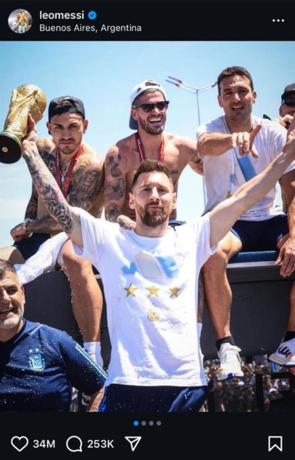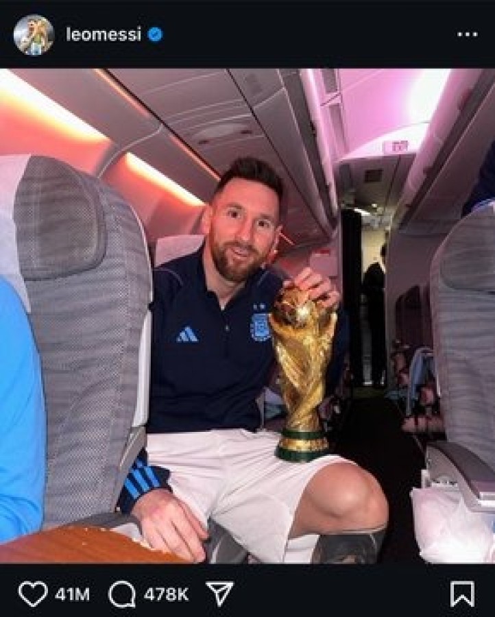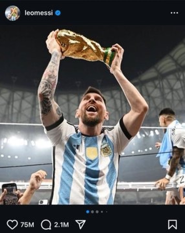 Messi 75 milyon beğeni ile gerçek bir şampiyon. Arjantin ile Dünya Kupası zaferini kutladığı anı Instagram'da paylaştı ve bu paylaşım, platform tarihinin en fazla beğeni alan gönderisi olmuş durumda.