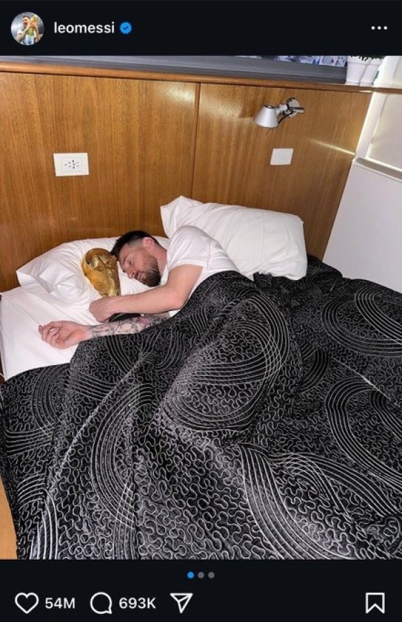 Listenin 3. sırasında tekrardan Lionel Messi çıkıyor karşımıza. Dünya Kupası ile uyuduğu an bile 54 milyon beğeni aldı.