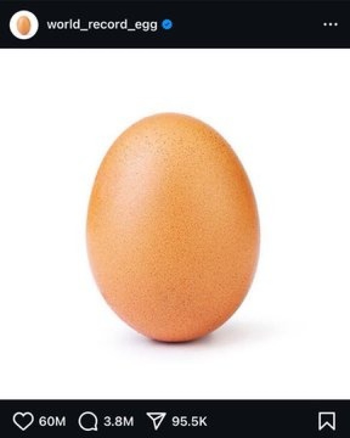Listenin ikinci sırasında şaşırtıcı bir şekilde bir yumurta görseli yer alıyor. Bu yumurta paylaşımı, 60 milyon beğeni almasıyla İnsatgramın en popüler gönderilerden biri haline geldi.