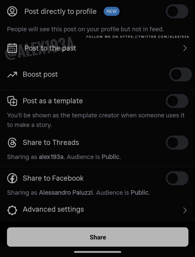 Mobil geliştirici ve genellikle Instagram'ın yeni özelliklerini sızdıran Alesandro Paluzzi, "Geçmiş'e gönder" seçeneğinin yer aldığı bir görüntüyü duyurdu.