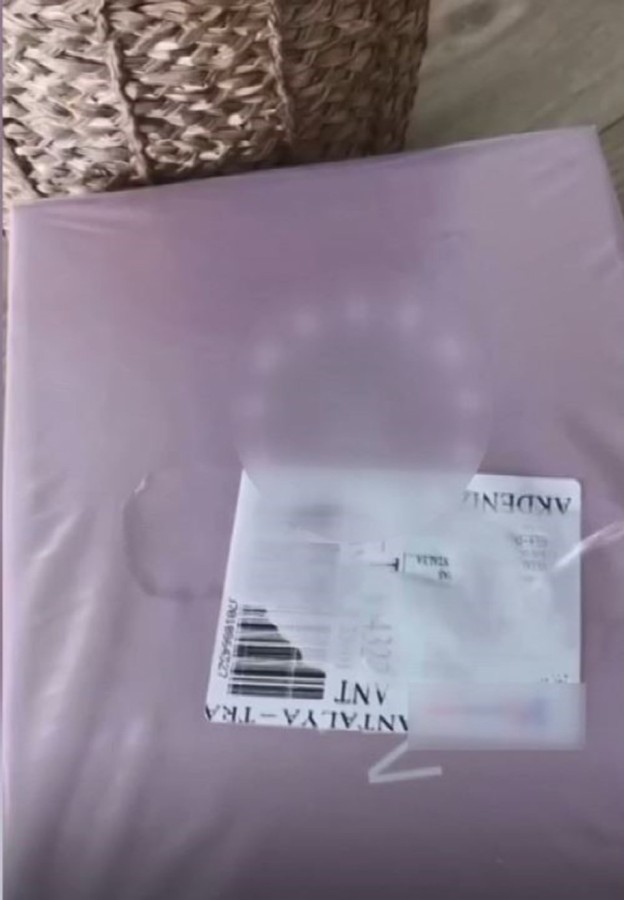 Paylaşılan videoda, kargo poşetinin üzerinde telefon numarası ve isim bulunan etiketin, teslimatı alan kişi tarafından dezenfektan benzeri bir ürünle silinerek, yazıların yok edildiği görülüyor.