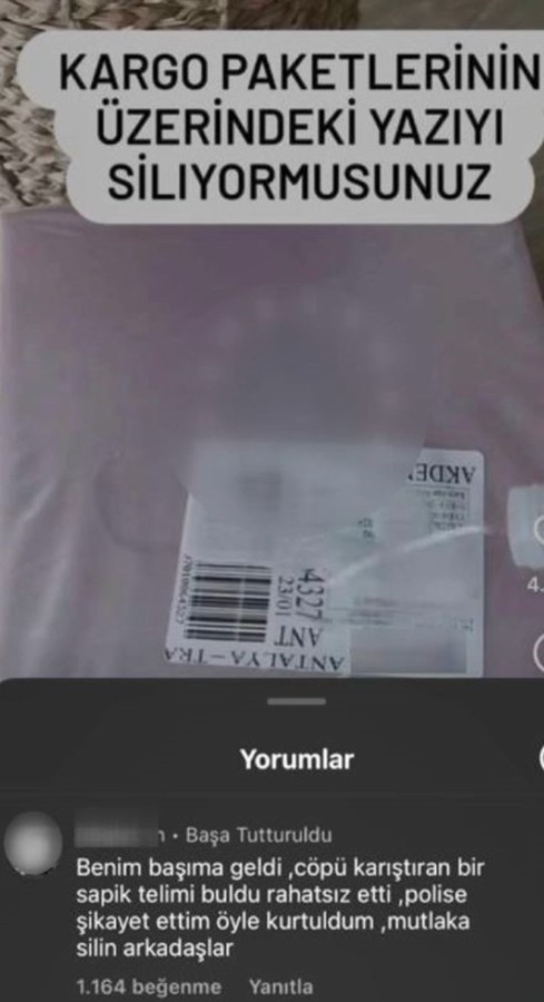 Sosyal medyadaki bir paylaşımın ardından, kargo paketleri üzerindeki etikette yer alan cep telefonu, TC kimlik numarası gibi kişisel verilerin, kargo teslim alındıktan sonra imha edilip edilmemesi tartışılıyor. Bir sosyal medya kullanıcısı "Çöpü karıştıran biri telefonumu buldu; rahatsız etti." açıklamasında bulundu. Paylaşımın altına yorum yapanlar ise, sosyal medyada başlarına gelen benzer olayları not düştü.