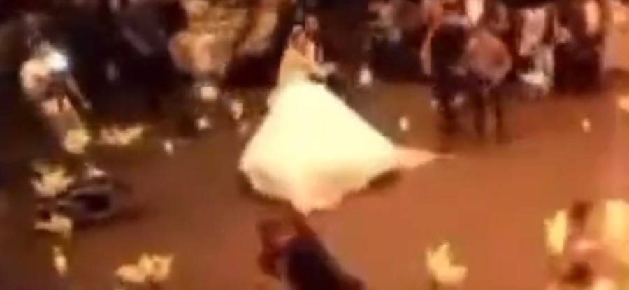 Gelin ve damadın dans ettiği esnada çıkan yangın görüntüleri sosyal medyaya da yansıdı.