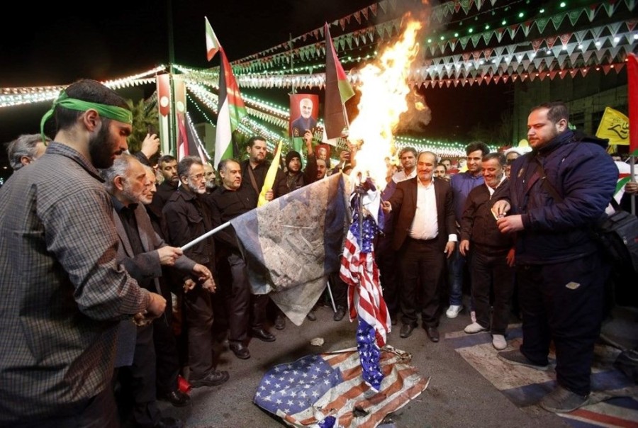 Suriye'de faaliyet gösteren İran destekli Fatimiyyun Tugayları, Hizbullah ve Filistin'e ait bayrakların dalgalandığı gösteride "Kahrolsun İsrail, kahrolsun ABD" ve "İntikam, intikam" , "İsrail, senin düşmanın benim" yazılı pankartlar taşındı.