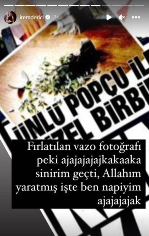 İrem Derici daha sonra saksı karesini de paylaşarak haberle dalga geçti.