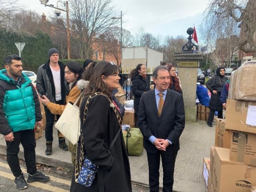Öte yandan İrlanda Uluslararası Gelişme Bakanı Sean Fleming, dün Türkiye'nin Dublin Büyükelçisi Mehmet Hakan Olcay'ı ziyaret ederek Türk Büyükelçiliği'nde yapılan yardım çalışmaları hakkında bilgi aldı.