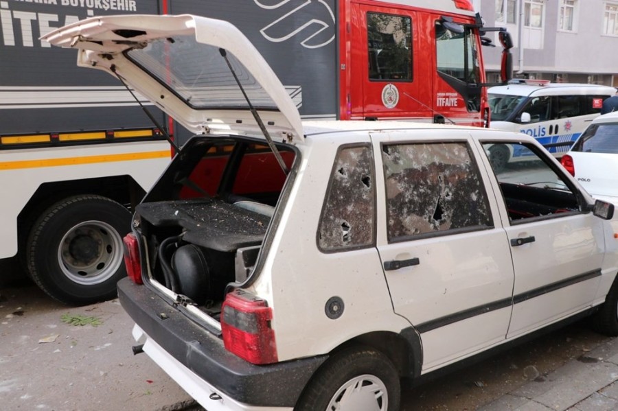 Patlamanın etkisi ile çevredeki iş yerleri ve park halindeki araçlar hasar gördü.