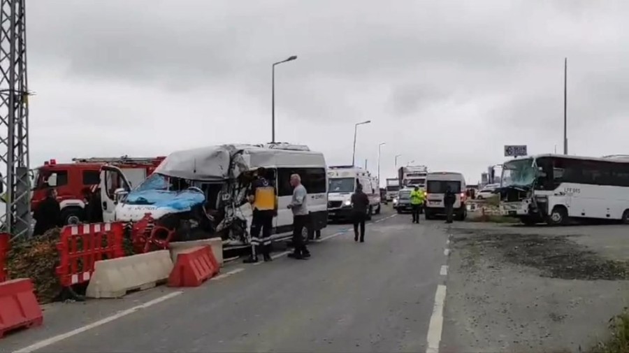 Silivri ilçesi Alipaşa Mahallesi Trablusgarp Bulvarı üzerinde saat 07.30 sıralarında bir fabrikada çalışan işçileri taşıyan minibüse karşı yönden gelen midibüs çarptı.