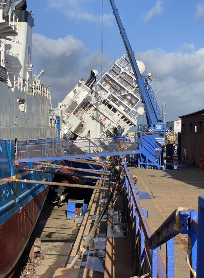 İskoçya'nın başkenti Edinburgh'daki Imperail tersanesinde bulunan kuru havuzdaki 76 metrelik gemi, sert rüzgar nedeniyle yan yattı. Gemide ve havuzda bulunan 25 kişi yaralandı. Bölgeye polis ve sağlık ekipleri sevk edildi. İskoç Ambulans Hizmetleri, 15 kişinin hastaneye kaldırıldığını, 10 kişinin ise olay yerinde tedavi edildiğini açıkladı.