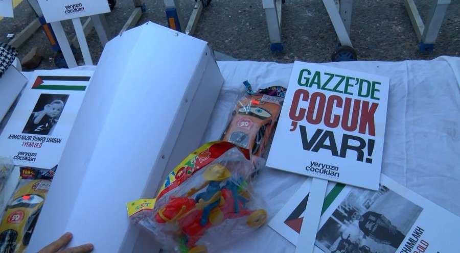 Yeryüzü Çocukları Derneği, İsrail'in Gazze'deki El-Ehli Babtist Hastanesi'ni hedef almasını ve yaşanan ölümleri Levent'teki İsrail Başkonsolosluğu önünde protesto etti. Saat 17.00'da konsolosluk önünde toplanan eylemciler açtıkları dövizlerle çocuk ölümlerini protesto ederek oyuncak bıraktı. İki kişi ise tabut içinde oyuncak getirdi.