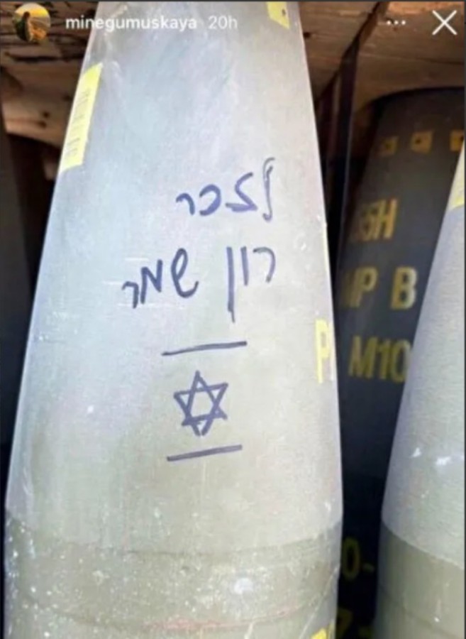 Gümüşkaya'nın paylaştığı başka bir fotoğraf karesinde ise üzerinde İbranice yazıların bulunduğu bir bomba yer alıyor. Kısa sürede sosyal medyanın gündemine oturan konuyla ilgili çok sayıda sosyal medya kullanıcısı, "Bu kadın Türk halkını temsil etmiyor" şeklinde yorumlar yaptı.
