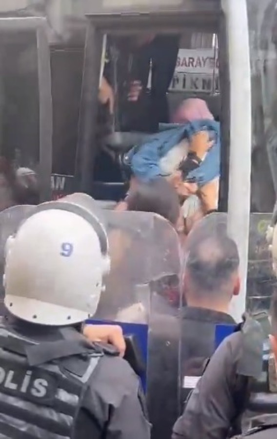 İstiklal Caddesi'nde bugün gerçekleşen 'İsrail' protestosunda bazı vatandaşlar gözaltına alındı. 30'u aşkın kişinin gözaltına alındığı ifade edilirken, polislerin kadın göstericileri ters kelepçe ile araca bindirdiği görüldü.