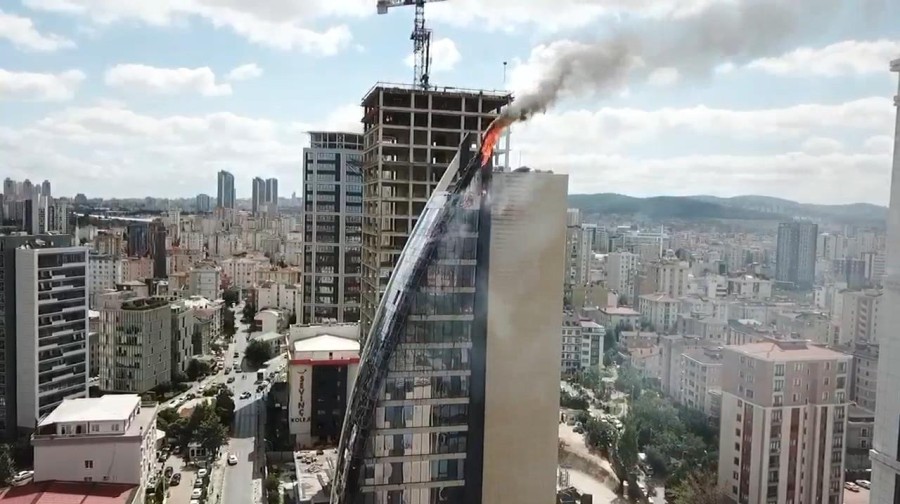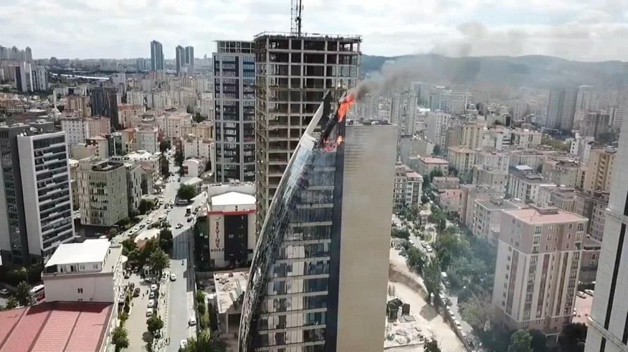İstanbul Ataşehir'de 17 katlı iş merkezinin dış cephesinde yangın meydana geldi.