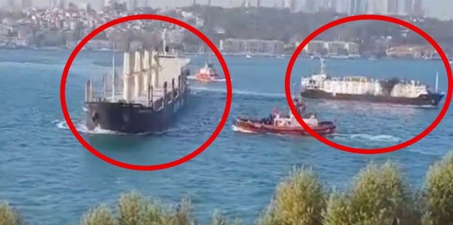 İstanbul Boğazı'nda iki gemi çarpıştı. Dümeni kilitlenen gemilerden biri kıyıya sürüklendi.
