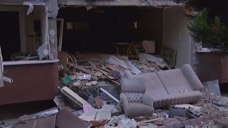 Patlama nedeniyle binadan kopan moloz parçaları ve eşyalar etrafa yayıldı.