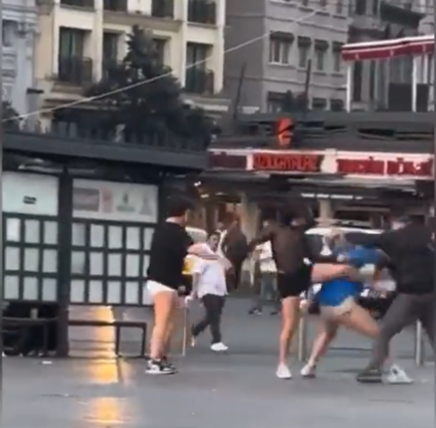 İstanbul Taksim'de ne zaman çekildiği belli olmayan bir görüntüde, 3 trans birey ile kendilerine laf atam adam arasında kavga çıktı.