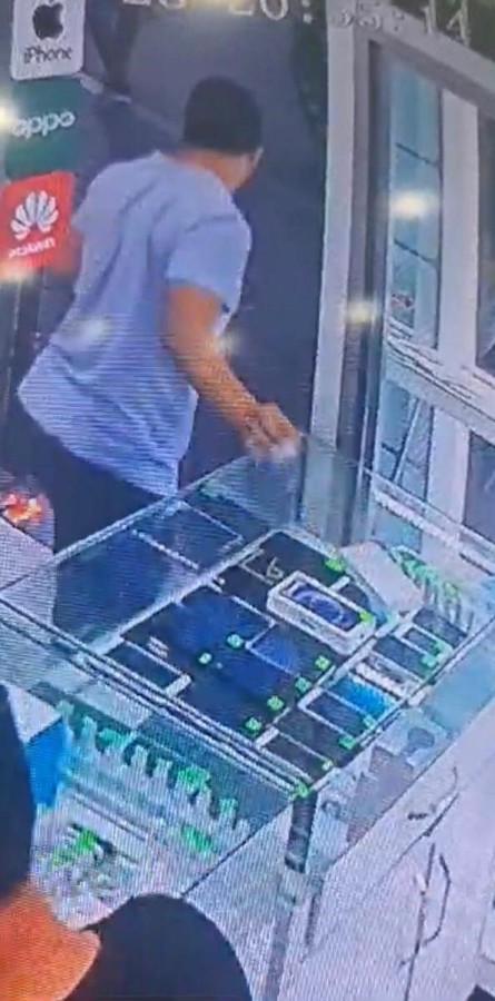 Şahıs, dükkan görevlisiyle önce kısa süre sohbet ettikten sonra çalışanın arkasını dönmesiyle telefonları çalıp koşarak dükkanlardan uzaklaştı.