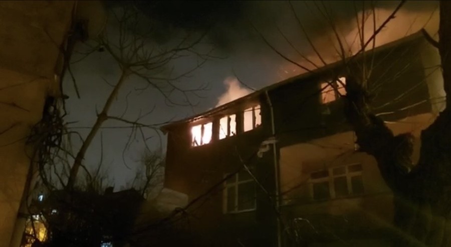Ümraniye'de 3 katlı binanın çatı katı alev alev yandı.