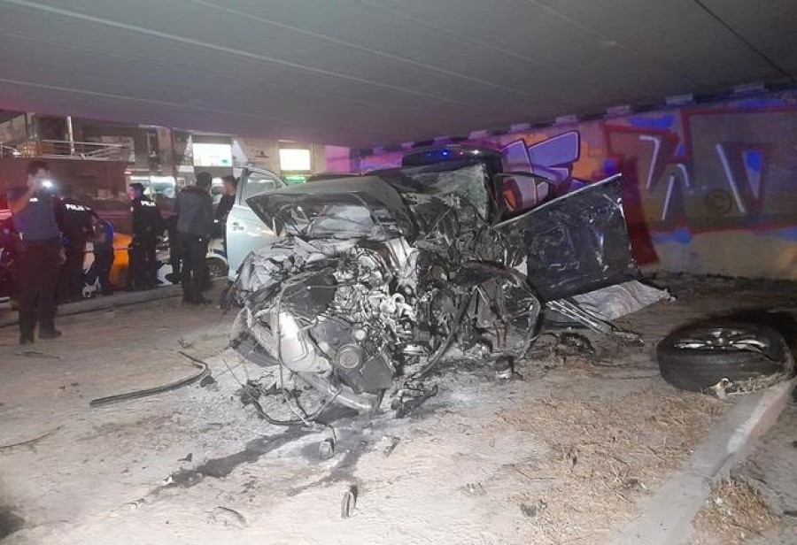 İstanbul Bahçelievler'de sürücüsünün direksiyon hakimiyetini kaybettiği otomobil, köprünün beton bloğuna çarptı.